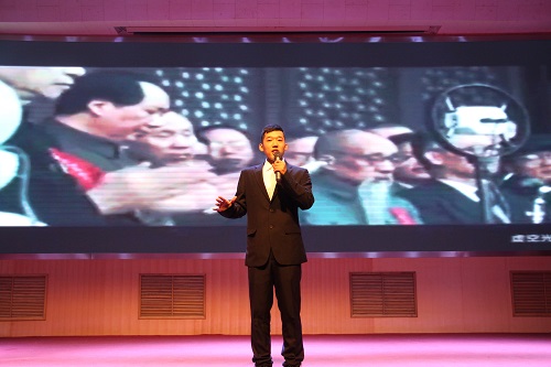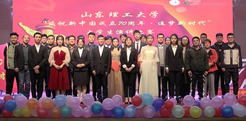 主题演讲环节,参赛选手们以饱满的热情、昂扬的姿态表达出对祖国的感恩与热爱。法公司王亚茹以“一起追梦,我的国!”为主题,讲到“少年强则国家,中国强则中国少年强”,要争做“五有”人才,共同追梦新时代。经济公司王奕涵通过讲述中华魂的故事,喊出“只要有一颗中国心,就留有一个中华魂!”选手们的演讲声情并茂、精彩迭出,他们以饱满的热情和富有感染力的语言深深得打动了评委和现场观众,赢得阵阵掌声。