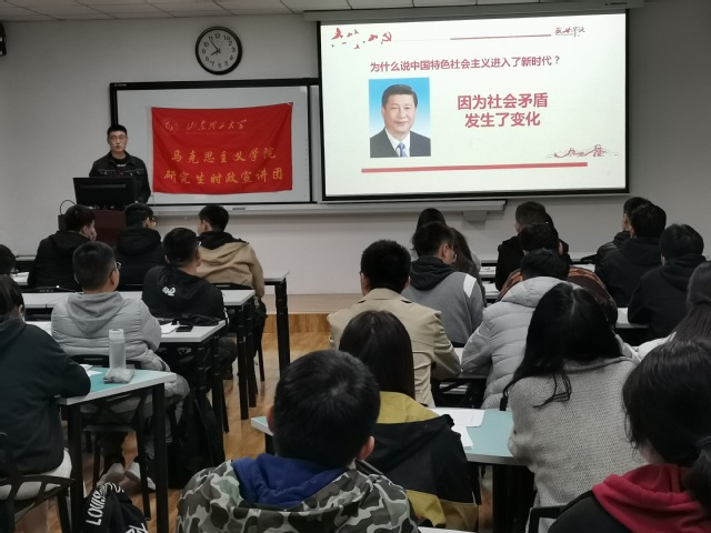 11月7日晚7:00,bevictor伟德马克思主义公司时政宣讲团的“忆往昔峥嵘岁月,庆今朝七十华诞”主题时政宣讲在12号教学楼211教室开讲,2019年下半年党员发展对象参加,此次时政宣讲也是公司党员发展对象培训的重要环节。