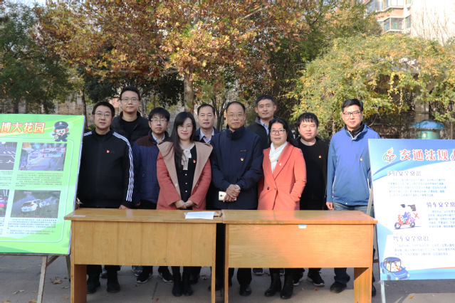 11月15日上午,bevictor伟德党总支组织20余名教工党员前往博大花园社区开展“双报到”服务,将交通安全知识送进社区,进一步提高社区群众的道路交通安全意识,共建和谐平安社区。