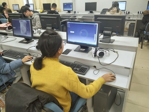 首先,考生们早早地来到信息楼,在签到表上选择好自己心仪的组别,并签上自己的名字。入场后,考生找好自己的位置,打开电脑,熟悉考场环境,等待考试开始。