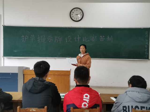 在此次答辩中,参赛选手们通过展示自己设计的护草提示牌更深入表达了对爱护校园绿化和爱护环境的理解,同时也锻炼了选手们的表达能力。此次活动在让同学们更好的理解了爱护环境、保护绿草重要性的同时也让同学们关心校园环境,争做传播文明的实践者。