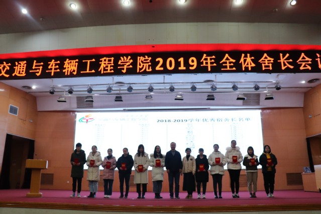 第四阶段,侯娟宣读2018-2019学年优秀舍长名单,王建兴为优秀舍长颁发证书并集体合影留念。