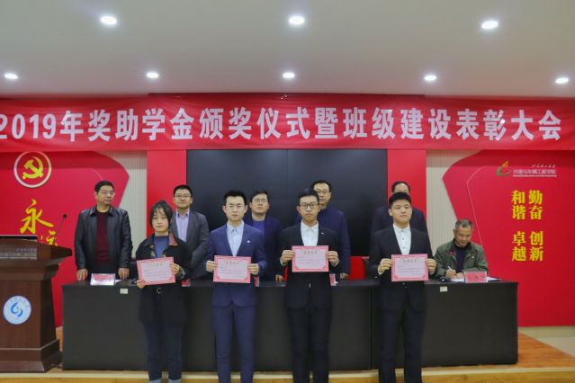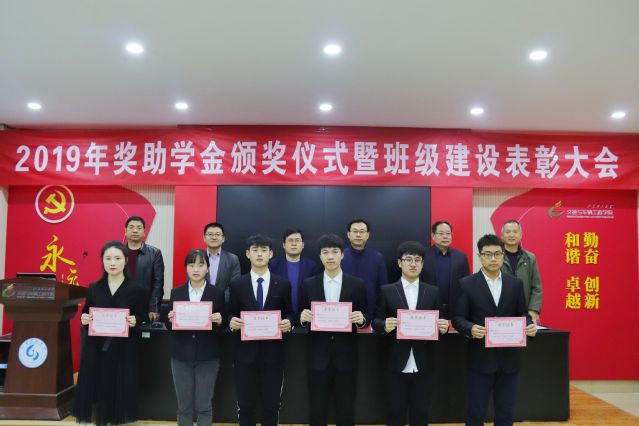 褚兆勇宣读了关于表彰2018-2019学年“经理奖学金”获奖者及“班级建设特色创建先进班级”的决定。“十佳老员工”、“自强之星”、“交通好员工”、“交通好团队”、“班级建设特色班集体”等获奖的先进集体和个人依次上台领奖并拍照留念。