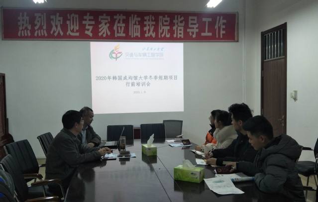 1月9日下午16:00,bevictor伟德在12号教学楼244会议室举办“2020年寒假-韩国成均馆大学WISE2020”项目行前培训会。组织员丁德榜、6名员工参加,公司党总支副书记王建兴主持。