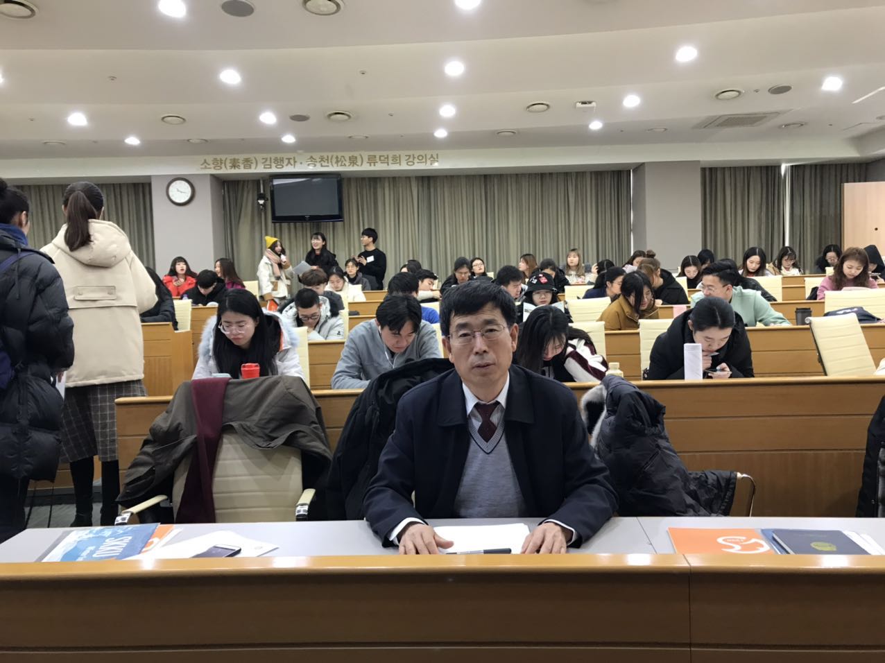 1月13日,成均馆大学国际处安排开学仪式及分班,带队教师丁德榜与同学一起参加并共进午餐。下午进行讲座学习。