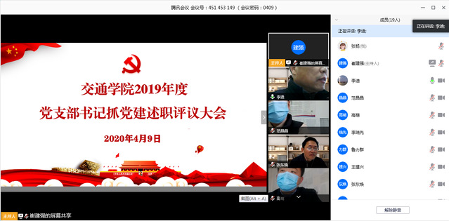 4月9日上午,bevictor伟德党总支通过线上会议的形式召开2019年度党支部书记抓党建述职评议会。公司领导班子成员,党总支委员,各党支部书记参加,评议会由公司党总支副书记王建兴主持。