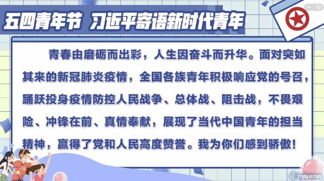 为引导广大团员青年继承和弘扬“爱国、进步、民主、科学”的五四精神,展示自信自强、奋发有为的精神风貌。五四青年节之际,能动1801团支部线上组织开展“让青春为祖国绽放”主题团课。由能动1801班委,全体同学参与。