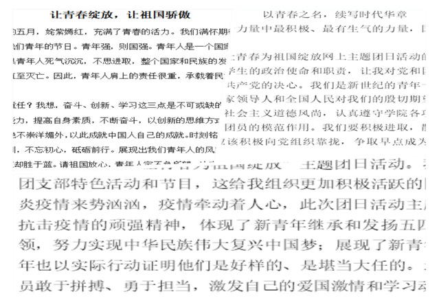 活动第三项,同学们积极踊跃参加,经过激烈的筛选对比选出两幅较为优秀的海报作品(图一),选出优秀文段若干篇(图二)。