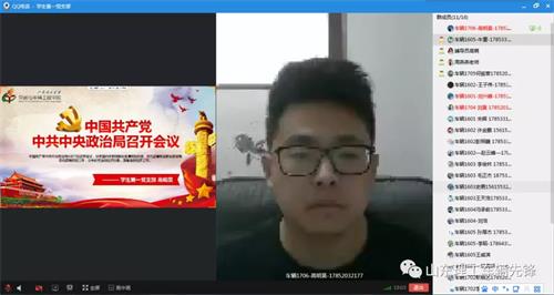在两位同志的带领下,支部全体党员认真学习了习近平总书记的讲话及会议内容,不仅体会到当前严峻疫情下,复工复产和决胜脱贫攻所面临的巨大困难,也让我们感受到党对恢复经济社会发展、坚决打赢脱贫攻坚战的信心与决心。与此同时,使各位党员更加深刻理解了“坚持党的领导是我国历史发展的必然和人民的选择”,我们要在党的领导下,为实现“两个一百年”奋斗目标、实现中华民族伟大复兴的中国梦而努力奋斗。