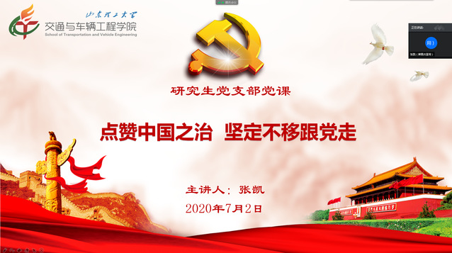 张凯以“点赞中国之治,坚定不移跟党走”讲授党课,他先对比世界多个国家抗击疫情的做法和成效,彰显我们国家制度优势的显著力量,点赞中国之治;后带领大家回顾中国共产党从产生到壮大,到执政地位的取得和巩固,他寄语支部全体党员把坚持党的领导体现在具体行动上,坚定不移听党话、跟党走。