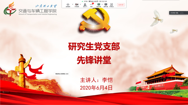 6月4日,研究生党支部开展“先锋讲堂”主题党日活动,由党支部李恺同志担任主讲人,分享个人的科研学习经历。