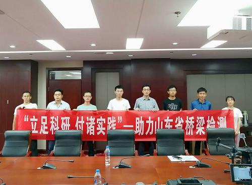 近年来,我国公路桥梁建设事业迅猛发展,桥梁建设也已经处于全球领先水平。桥梁作为交通基础设施的重点工程,桥梁的检测与养护工作受到高度重视。为深入交流学习桥梁检测技术,7月27日下午,“九曲之脊,护国重器”实践团一行到访山东省交通科学研究院,对无人机在桥梁检测方面的应用交流学习。山东省交通科学研究院副经理吕安涛,结构工程研究室主任郭庆辉、副主任周广利出席此次会议,实践团负责人赵厚文与部分成员共同参加。
