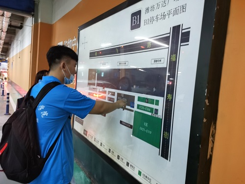 在调研过程中,停车场工作人员向实践队成员反映,由于万达广场人、车流量较大,为满足车辆停放需求,停车场总体面积较大,停车位数量多,但由于商场营业时间为上午9:30—22:00,白天车辆几乎停满,夜晚停放却很少,停车场处于闲置状态。而周边居民区白天停车位空余,晚上则出现车辆停放拥挤、堵塞道路等问题,对此,奎文区住建局与万达广场管理人员沟通后决定采用“错位停车”的方法,允许居民区车主夜间使用广场内部停车场,每晚收费为5元,比租车位还要便宜。这一措施有效缓解了居民区夜间车位拥挤的问题,并将广场停车场在夜间也充分利用起来。