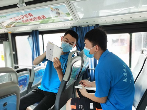 为进一步跟进城市公交车舒适度调研,探究公交线路安排的合理性,7月29日,周道如砥·‘疫’路畅行实践团成员再次前往潍坊市跟随k75路公交车开展线下跟车调研。