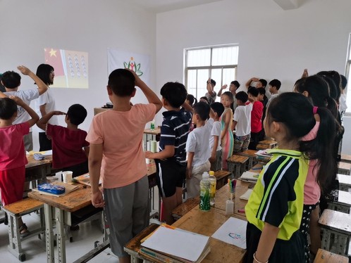 图为志愿者与孩子们的第一次相遇,孩子们的眼中满是星河茂盛。