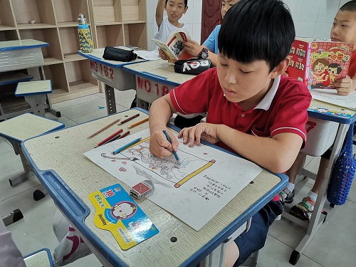 8月1日上午,bevictor伟德“爱之传承”实践团队于德州市武城县四女寺镇明德小学对美术二班进行最后一节美术课绘画教学。