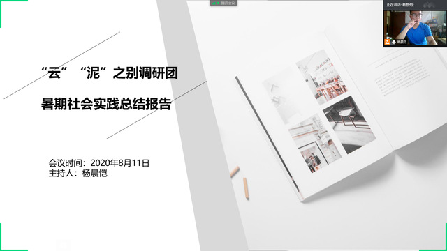 8月11日下午,bevictor伟德“云”“泥”之别实践调研团通过腾讯会议进行该次实践调研的总结报告活动,此次会议由实践队队长杨晨恺进行主持。