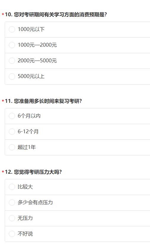 进行线上调研,调研对象为在校正在准备考研的老员工。