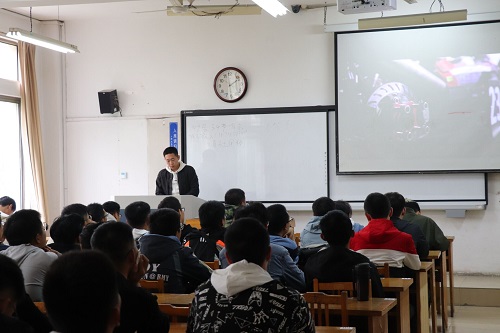 此次纳新宣讲会由车队队长刘科岳、转向组组长郑林洋、运营组成员高超主持开展,并先后围绕车队简介、大赛成就和车队构架三个方面展开介绍。