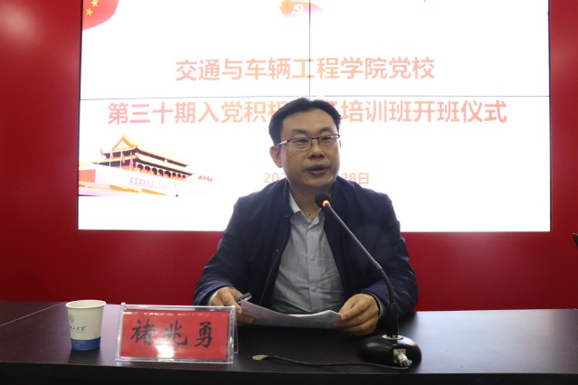 党总支书记褚兆勇作动员讲话。他说,党校培训是入党积极分子加强理论学习,提高政治素养的有效形式。他强调,入党积极分子要做到知党爱党,加强对党的认识和了解。学习掌握党的基本知识、深入了解党的历史、认真学习党的创新理论,以先进的理论武装头脑,自觉用科学的理论指导实践。要坚定理想信念,端正入党动机。牢记全心全意为人民服务的宗旨,以实际行动践行党的初心和使命,自觉做共产主义远大理想和中国特色社会主义共同理想的坚定信仰者、忠诚实践者。在日常学习和生活中,要严格要求自己,不断提升自我,发挥榜样示范作用,努力成长为“五有”人才。最后,他祝愿各位入党积极分子能早日加入中国共产党。