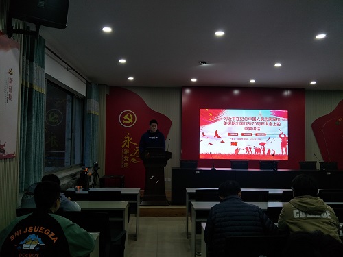 其次,在何振营同志的讲解下,支部成员一起学习了《习近平在纪念中国人民志愿军抗美援朝出国作战70周年大会上的重要讲话》,何振营同志从抗美援朝历史成就、抗美援朝历史意义、抗美援朝伟大精神三个方面进行讲解。
