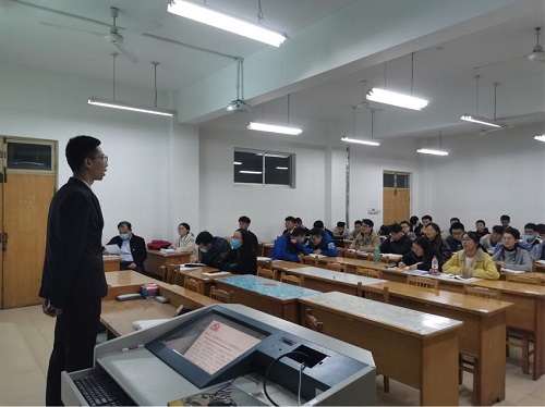 会议伊始,何振营向全体与会成员介绍了本次会议的内容,并简单阐述了本次公开答辩的流程。答辩开始后答辩者们依次按照顺序就个人基本情况、入党动机、个人思想进步过程与现实表现情况进行自我陈述。随后,答辩者从题库中抽取3道客观题和2道主观题进行回答,以检验对党的认识和基本理论知识的掌握程度。叙述完毕后,与会者围绕答辩主题自由提问,以进一步考察答辩者的思想政治素质。答辩环节结束后,与会党员进行无记名投票表决,全体与会党员一致同意杜香锦、王兴欢等十九名同志通过答辩。最后,员工第一党支部书记高萌和辅导员周燕燕对答辩情况进行点评,指出了答辩存在的问题和需要改进的方面,对各位党员发展对象提出了希望和要求。