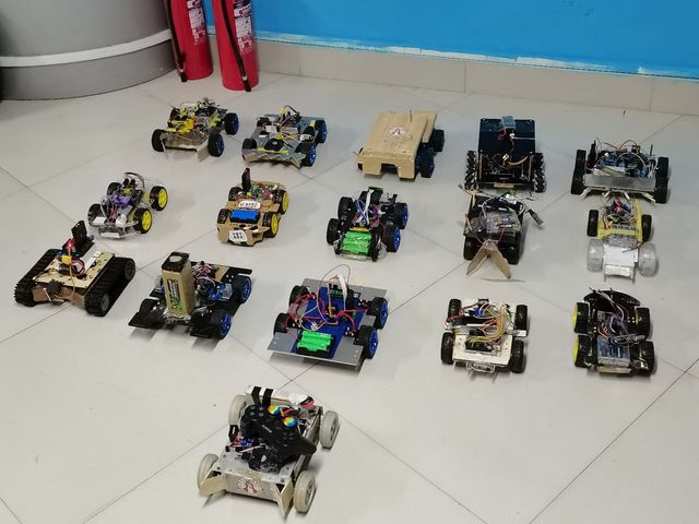 比赛伊始,参赛各组携带自制小车提前到达比赛现场,组员对自己的小车做赛前调试,社团的技术人员为参赛小车进行车检,取消不符合参赛要求队伍的参赛规则。