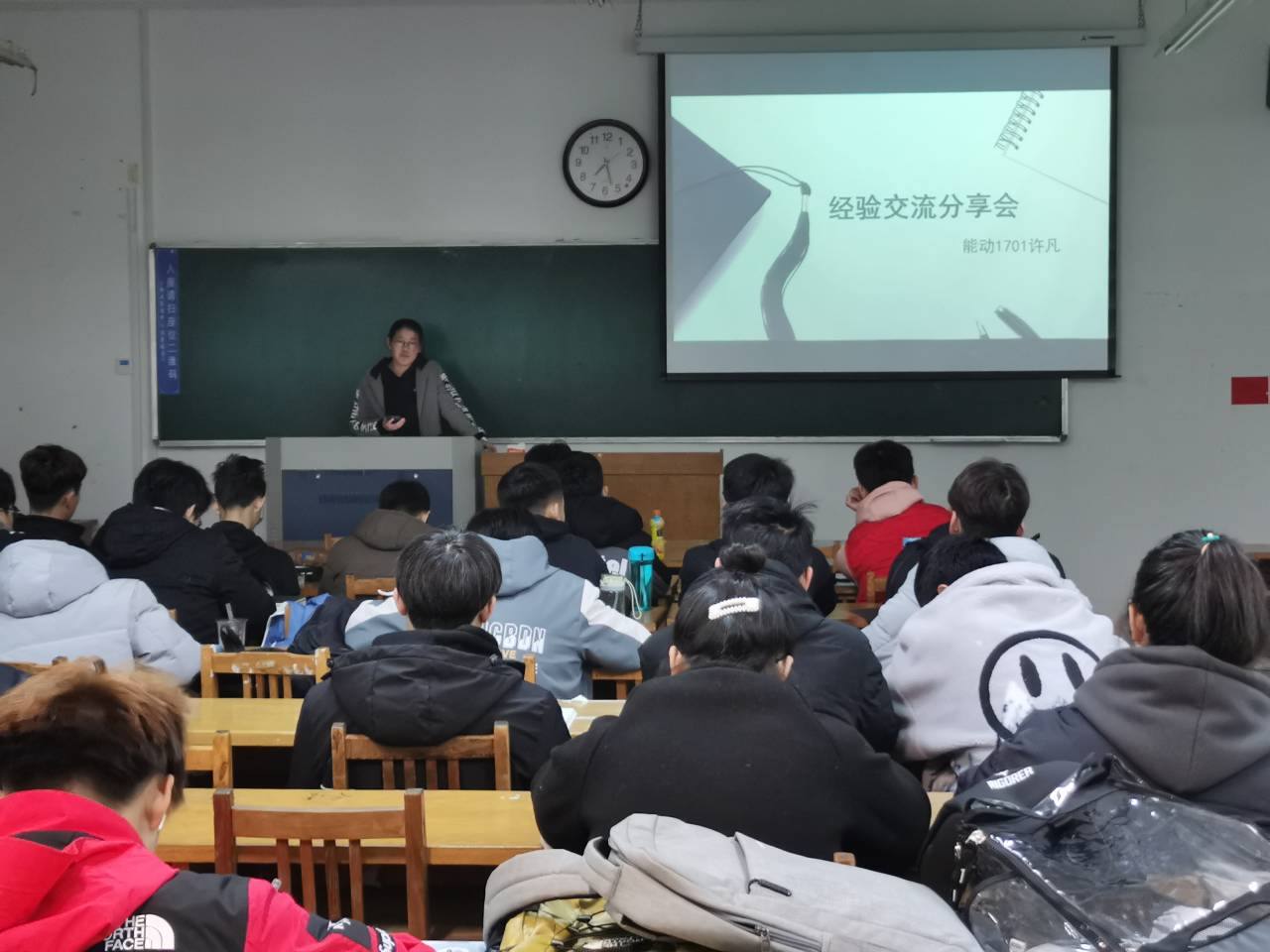 12月10日晚七点,公司在12号教学楼202教室召开省政府奖学金获得者经验交流分享会。此次分享会邀请公司能动1701优秀员工、省政府奖学金获得者许凡为公司能动2004及交运2003全体同学做了一场精彩的报告。会议由能动2004班班长胡志凯主持。