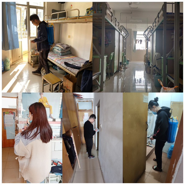 此次活动分为消杀和卫生大扫除两个阶段。第一阶段,辅导员老师带领员工对所有宿舍、研究生实验室进行分批次消杀工作,各年级利用公寓配备的消毒工具对宿舍内部进行全面、彻底消杀,保证了公寓的卫生安全。第二阶段,组织全体同学开展公寓卫生大扫除及安全排查。此次活动,同学们十分重视,对宿舍进行了细致的打扫,并进行了全方位的消毒。各个专业的辅导员们到员工公寓仔细检查清理成果,认真排查潜在的用电隐患等安全问题,并对同学们的打扫成果提出表扬,但也有宿舍存在不足之处,老师们和员工干部对检查中出现的问题进行了批评与指导,强调了宿舍卫生和安全的重要性,同学们都认真对待,仔细倾听,及时改正。