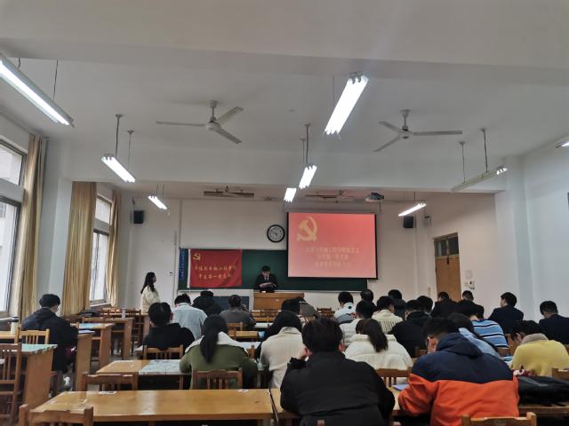 会议伊始,孙艾宁同志向全体与会成员介绍了本次会议的内容,并简单阐述了本次公开答辩的流程。答辩开始后答辩者们依次按照顺序就个人基本情况、入党动机、个人思想进步过程与现实表现情况进行自我陈述。随后,答辩者从题库中抽取3道客观题和2道主观题进行回答,以检验对党的认识和基本理论知识的掌握程度。叙述完毕后,与会者围绕答辩主题自由提问,以进一步考察答辩者的思想政治素质。答辩环节结束后,与会党员进行无记名投票表决,全体与会党员一致同意张耀文、王靖业等十一名同志通过答辩。最后,员工第一党支部书记高萌和辅导员周燕燕对答辩情况进行点评,指出了答辩存在的问题和需要改进的方面,对各位党员发展对象提出了希望和要求。