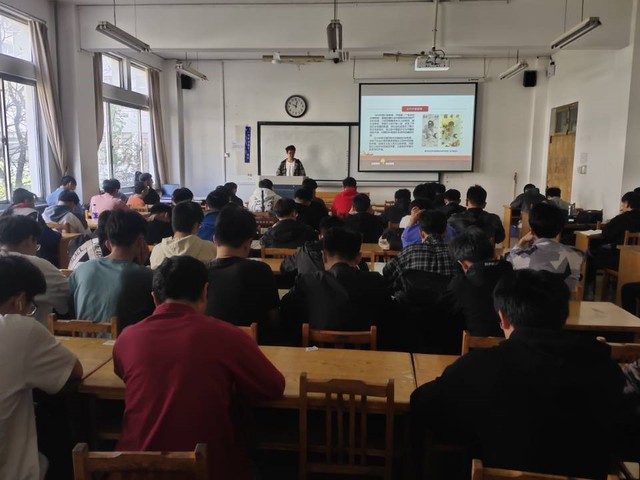 会议伊始,石梁毅讲述了此次活动的要点,注意事项和活动要求。接着,石梁毅以PPT的形式讲解了新民主主义革命,从历史大背景、革命历程、历史意义和基本经验四个方面让同学们了解到新民主主义革命是指在帝国主义和无产阶级革命时代,殖民地半殖民地国家中的无产阶级领导的资产阶级民主革命。同学们对新民主主义革命有了初步了解,对中国共产党的艰苦奋斗环境和中国共产党不惧艰苦的奋斗精神有了深刻体会。随后,石梁毅又播放了《建军大业》片段,影片通过讲述共产党当时艰苦的革命环境,凸显了爱国分子在帝国主义、封建主义、官僚资本主义三座大山压迫下的艰苦斗争。