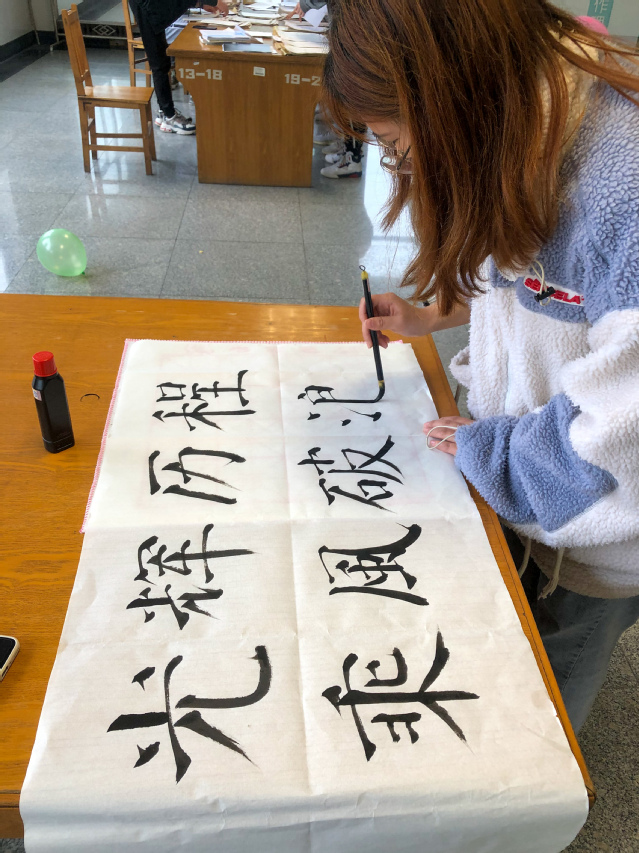 此次书法绘画展示活动分为硬笔、软笔、长卷画三部分。同学们以中国共产党的百年风雨和波澜壮阔的伟大实践为主题,饱含着对党的深厚情感进行现场创作,以书法和绘画的表现形式展现了中国共产党的光辉历程。
