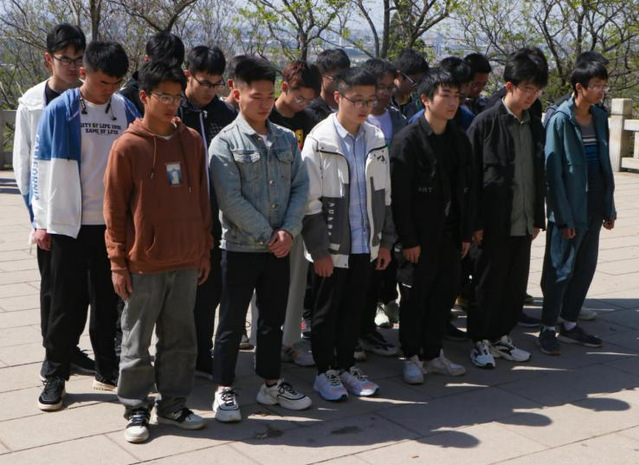 活动第三项,李晓龙带领支部成员于纪念碑前重温入团誓词,支部成员们举起右拳,口中的入团誓词字句铿锵,饱含力量。透露出对党,对国家的忠贞与热爱。