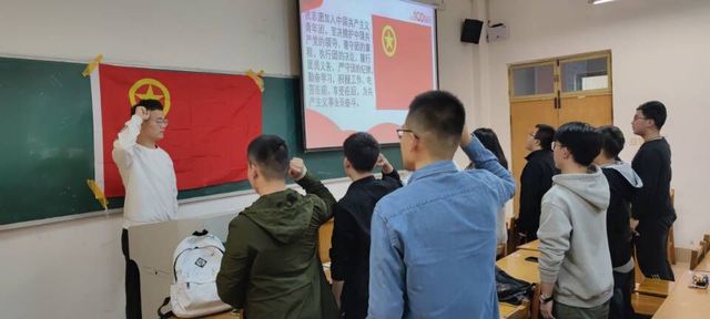 集中学习之后,孙志强带领团员们重温入团誓词,目的在于唤起大家的团员意识,时刻牢记自己是一名共青团员,自觉加强组织性、纪律性,进一步加强团支部的向心力与战斗力。孙志强说到,同学们应将入团誓词铭记于心,时刻提醒自己,把誓词化为行动,不忘初心跟党走。每个团员要努力学习,积极向上,充分发挥团员模范带头作用。