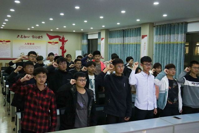 团员们举起的右手紧握的是共青团员的忠诚,专注的目光凝聚着共青团员的坚定。教室里回荡的神圣庄严的入团誓词,仿佛又让在场的全体共青团员回到了入团时那令人激动而又难忘的时刻。宣誓完毕后,同学们又共同学习了团章,重温并深入了解其中有关团员义务和权利的条款。