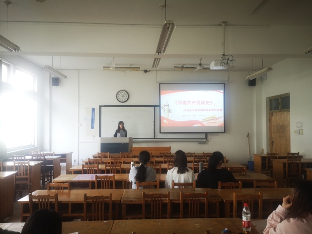 首先,由刘新月和韩雨欣带领全体党员学习《中国共产党简史》中的第五章,新民主主义革命和建设时期历史,共分为五大部分。中华人民共和国的成立和新生人民政权的巩固,抗美援朝战争、土地制度改革和其它民主改革,国民经济的恢复和各项建设的展开,党在过渡时期的总路线和有计划大规模经济建设的开始,社会主义改造的基本完成和社会主义制度的建立。然后是党在社会主义初级阶段的探索和曲折发展,韩雨欣指出,从新中国成立到文化大革命结束,是我们党领导人民艰辛探索社会主义革命和建设道路的历史时期。虽经历了严重曲折,但仍然取得了独创性理论和巨大成就。