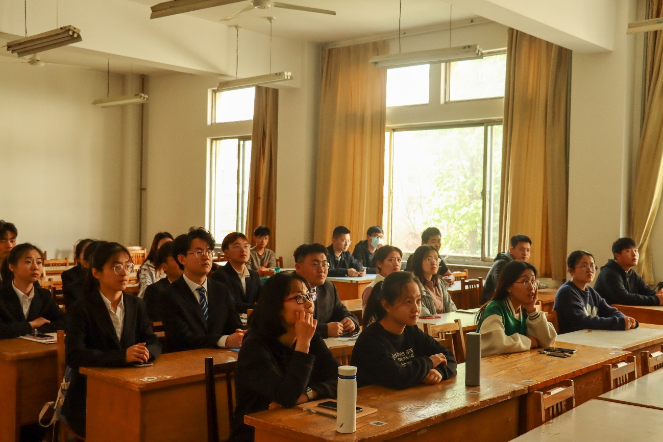 徐晓宁以视频《历史转折中的邓小平》导入此次宣讲活动的主题,他首先介绍了邓小平同志刚刚复出时,主持召开科学和教育工作座谈会的内容,对“要不要改变过去的教育方针”、“要不要实行统一考试”、“高考是不是当年开始”等问题进行讲解。然后就恢复高考这一重大决定的曲折过程进行了近一步解释,深刻阐述了人才基础对改革开放时期发展重要的推动作用。宣讲过程中,同学们认真聆听、积极互动,现场氛围活跃融洽。