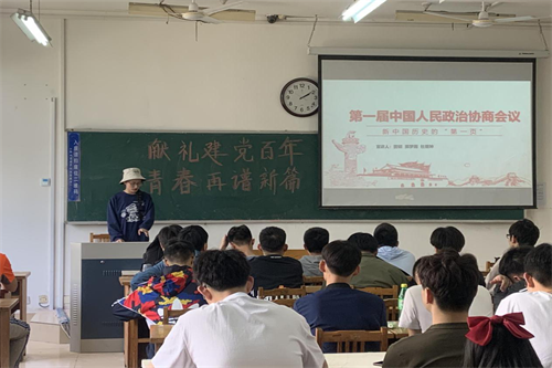 宣讲团成员交运1801班郭梦雨带领支部成员共同学习第一届中国人民政治协商会议。郭梦雨从政治协商会议的筹备工作、起草纲领、国旗国歌国徽的确定、开国大典四个方面进行讲解,让同学们清楚地了解了中国第一届中国人民政治协商会议的重要性,了解了国旗国歌国徽的设计灵感以及丰富含义,也通过播放影视作品的方式感受到了开国大典的宏伟,开启了中华民族伟大复兴历史的新阶段、新纪元,改变了东方的格局,壮大了世界的和平民主的力量,为其他共产主义国家做了好榜样。