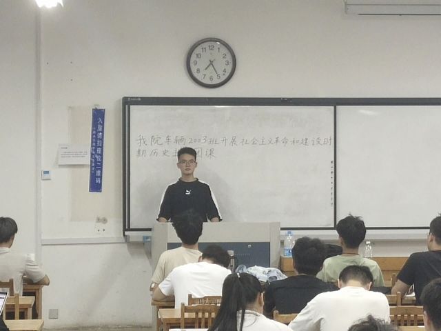 6月6日晚,交通学院车辆2003班在12号教学楼210教室组织开展了学习社会主义革命和建设时期历史主题团课,2020级车辆工程专业辅导员吕科晨和车辆2003班全体成员共同参加,车辆2003班团支书石梁毅主讲。