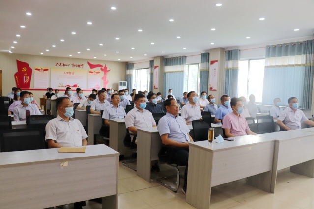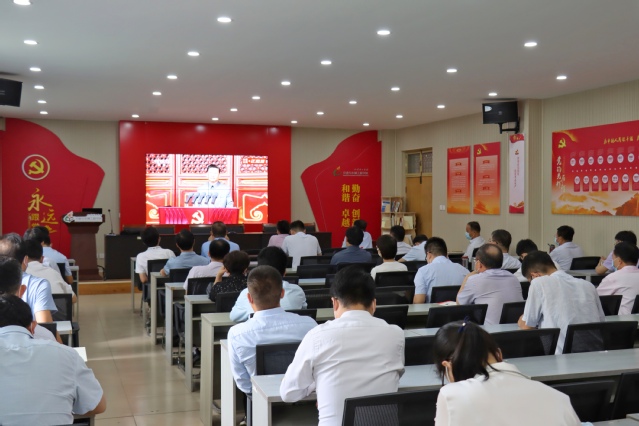 公司领导班子成员、教师党员在12号教学楼217收听收看大会实况直播
