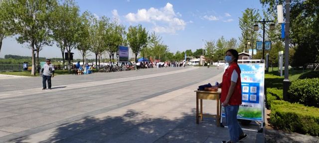 本次活动主会场设在喷泉广场,广场北面设置了三个行人出入口和社会车辆停车场,广场西面设有一处青年志愿服务岗。6月5日早晨志愿者们在会场入口处集合完毕后,与公园物业部经理对接。10位党员志愿者两两一组,加入了秩序管理的队伍。六名党员负责三个入口的测温工作,两名党员负责停车管理和引导工作,其他两名党员坚守在青年志愿服务岗,为来往行人提供包裹寄存、急救箱、路线引导、热水等温情服务。服务期间,员工第四党支部的青年党员志愿者们礼貌并周到,热情且亲切,真正做到了为市民提供安全有序的活动环境和游园便利条件,为让公园变得更加“有品质、有活力、有温度”,贡献出了自己的一份微薄力量。