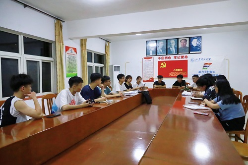 7月17日晚上,“鳌鳌”反哺调研实践团在鳌山卫街道鳌角石村党群服务中心二楼会议室开展第一次社会实践会议。此次会议由社会实践团负责人刘黎昌主持,实践团全体成员共同参加。