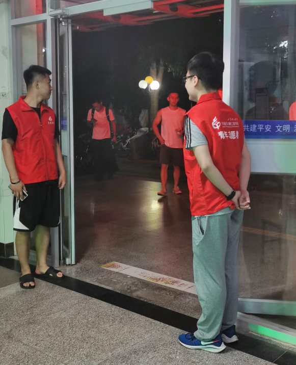此外,毕业生离校期间,生活服务部联合员工第三党支部成员,开展“志愿服务在公寓·哪怕细小如尘”实践活动。由部门的同学与员工第三党支部党员在公寓每晚执勤到11点,协助管理员进行夜晚归寝、公共区域卫生打扫卫生等事宜,受到广大同学的一致好评。