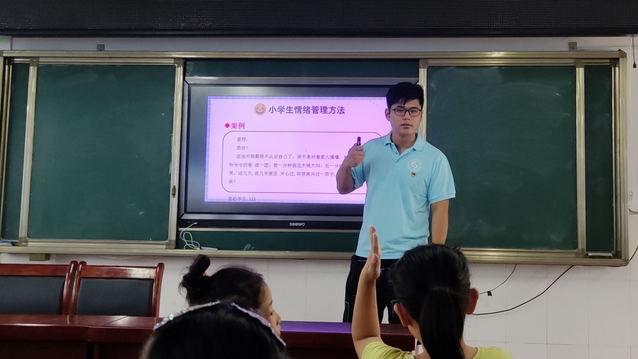 7月21日上午,“爱之传承•红色之旅”暑期社会实践团成员张硕为同学们讲授心理健康教育课。