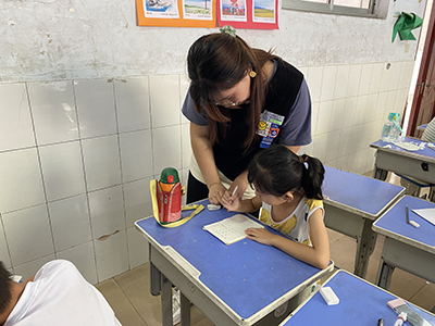 课后,“爱之传承•红色之旅”暑期社会实践团队的成员认真阅读每封信,并在信末写下对同学们的美好祝愿。