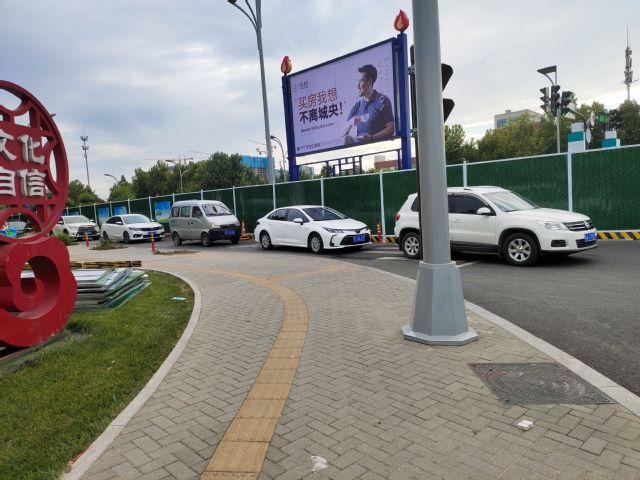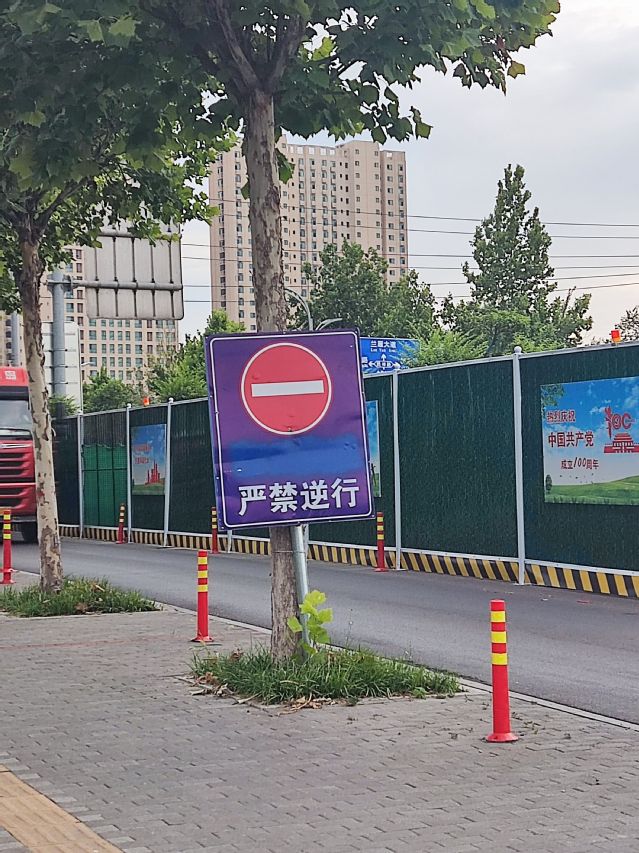根据《城市道路管理条例》第二十四条:城市道路的养护、维修工程应当按照规定的期限修复竣工,并在养护、维修工程施工现场设置明显标志和安全防围设施,保障行人和交通车辆安全。道路施工安全标志的作用就是告示路人前方施工,为了安全,要减速慢行或绕行,以减少安全事故的发生。“智行无疆”实践团此次前往调研的目的就是为了考察快速路施工期间道路施工安全标志的布置和安放位置是否存在不合理以及道路施工安全标志内容是否存在晦涩难懂的情况出现。经实践团成员调研后发现,中润大道和金晶路交叉口以北路段的道路施工安全标志内容及安放位置大部分均无不合理情况。但是存在部分路段虽设置安放禁止逆行的道路安全指示标志但依旧有大量非机动车逆行的现象,究其原因是由于前方交叉口由于道路施工封闭,道路中央放置大量路障阻隔,非机动车无法穿过道路进入右侧辅道,被迫只能在左侧辅道逆行行驶。在调查过程中,实践团成员发现施工路段辅路晚高峰期间交通量较大,由于辅路较窄,仅能容许单个机动车行驶,因此交通拥堵严重,造成大量机动车积压的现象出现。同时由于大量机动车积压占用辅路,非机动车只能被迫在人行道上骑行,由于人行道为砖石路面,凹凸不平,增加了非机动车骑行的安全风险。