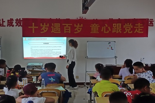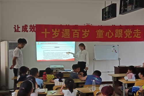 为培养和增进孩子对党、对祖国的深厚感情,增强孩子对中国共产党成立100年来的艰辛历程和辉煌成就的了解。“鳌鳌”反哺调研实践团队于7月26日下午在鳌角石村老村委支教教室中开展“讲党史故事,做薪火传人”主题活动。房玉莹、梁云斌担任本次党史故事讲解员。