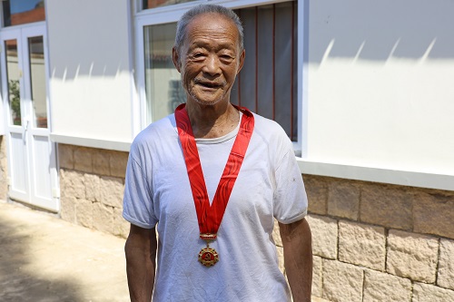 实践团在村委会负责人的带领下,走进李建吨老人家。李建吨,1934年4月生人,已经87岁高龄的他身体硬朗,精神矍铄。1971年入党,至今已整整50年。得知实践团来意后,李云吨回屋戴上了纪念章,并向实践团展示了不久前获得的50年党员纪念章举止投足之间皆是自豪。镜头中87岁的李建吨佩戴纪念章,眼神坚毅,神情庄严肃重。1963年至1983年,李建吨担任政治队长。随后至2018年,他一直担任大队联户队长,带领130多位社员种植花生、玉米等作物,分发粮食大搞生产,投身于农业生产大寨。跟随党的指导,李建吨坚持“以粮为纲,全面发展”的战略政策,带动社员发家致富,舍小我,为大家。