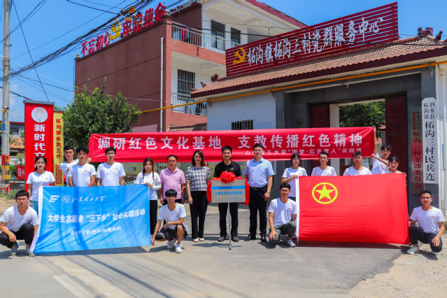 8月2日,圆梦•红色育人”社会实践团于济宁市泗水县柘沟镇柘沟三村村民委员会举行揭牌仪式,柘沟镇党委副书记侯东兵,柘沟镇党委委员、副镇长郭孟珏,柘沟镇柘沟三村党支部书记孙文田,bevictor伟德副科级辅导员、研究生党支部书记张凯出席此次活动,圆梦•红色育人”社会实践团全体成员参加。