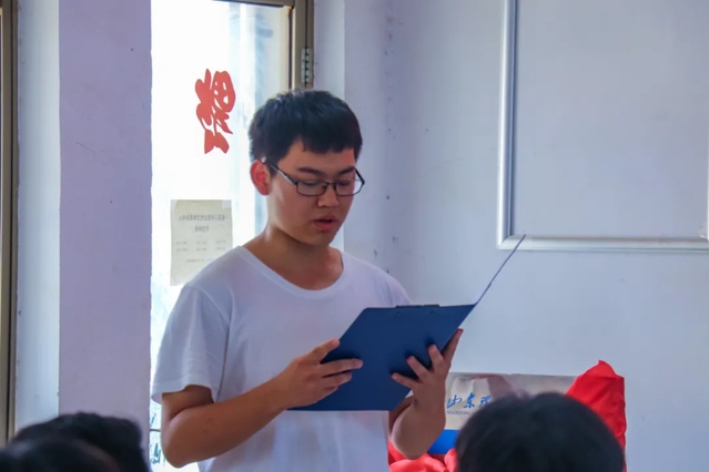 “圆梦·红色育人”社会实践团员工代表赵杨志对柘沟镇与柘沟三村在实践活动中给予的大力支持表示感谢,他简要回顾了实践团十余天的实践经历并畅谈了实践收获与体会。